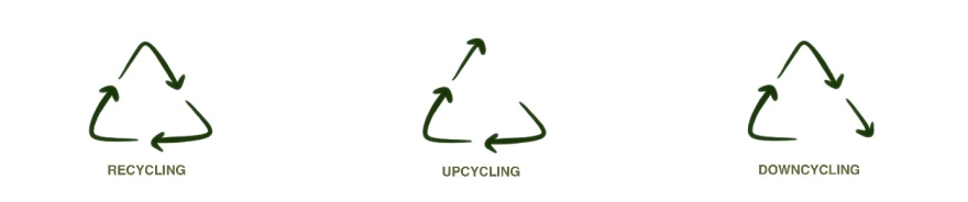 Recykling jest często używany jako ogólne określenie ponownego wykorzystania materiałów lub surowców. Jeśli wartość produktu końcowego pozostaje mniej więcej taka sama, mamy do czynienia z recyklingiem. Upcykling to forma recyklingu, w której materiał o niskiej wartości jest przekształcany w coś o wysokiej wartości. Downcycling to forma recyklingu, w której materiał może być użyty jeszcze kilka razy w produktach o niskiej wartości. Surowiec nie może być ponownie wykorzystany w tej samej jakości.